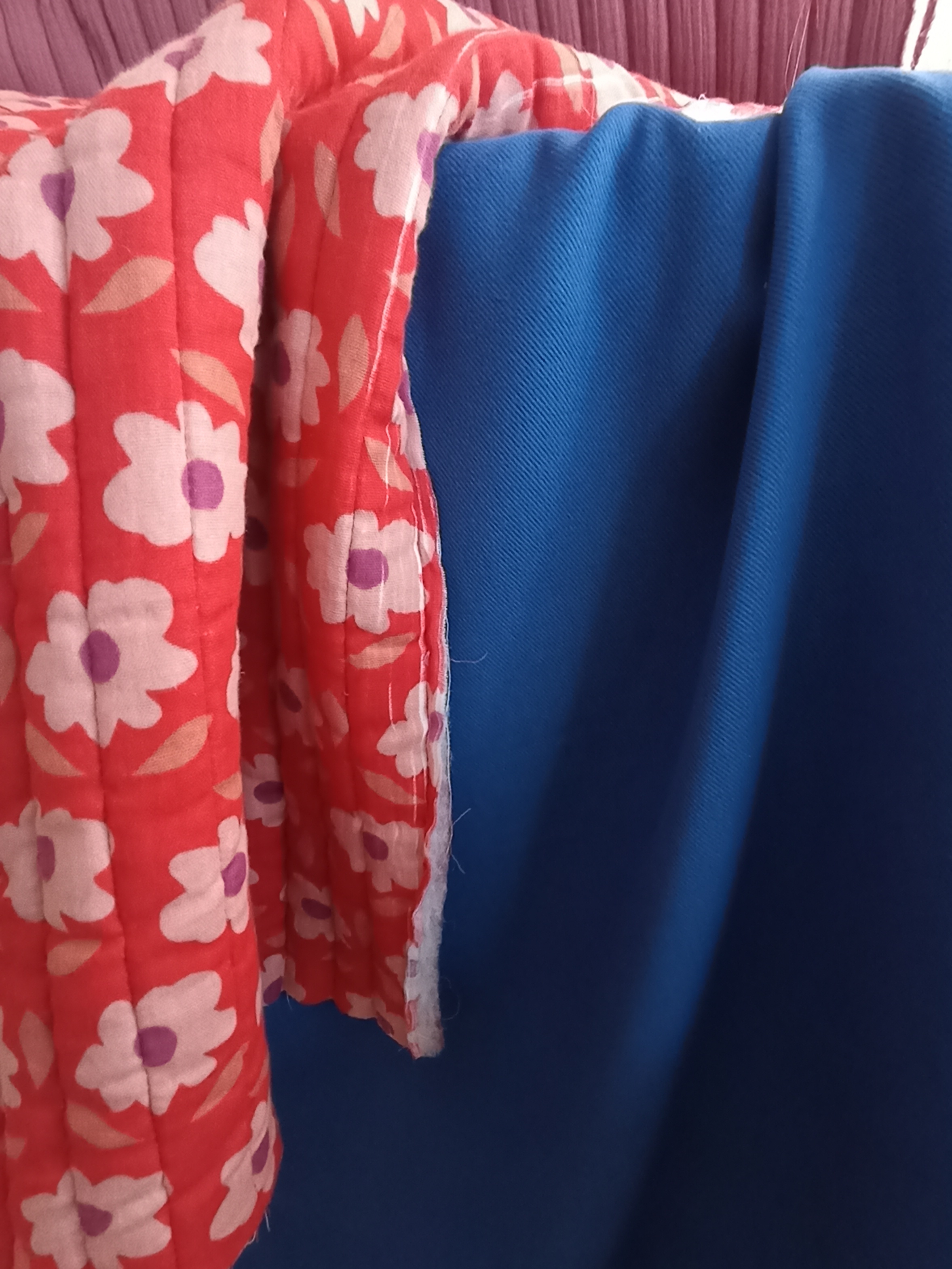 She made it for herself - a sweet blouse in off white heavyweight linen and cozy indigo corduroy pants.